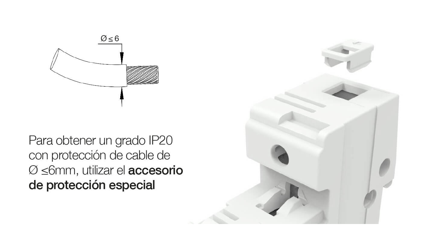 | * Para obtener un grado IP20 con protección de cable de Ø ≤6mm, utilizar el accesorio de protección especial. | |