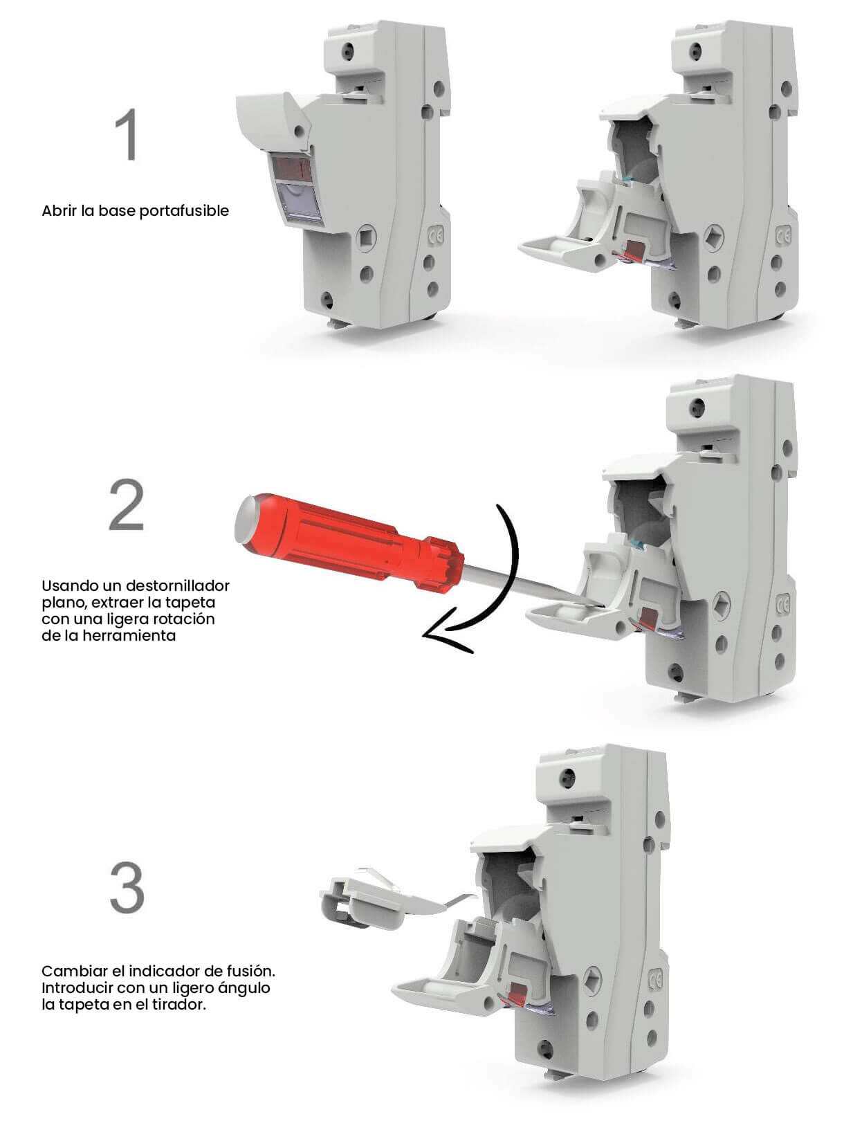 Para evitar la maniobra y conexión, con la base abierta, posicionar el accesorio “Soporte candado”, haciéndolo deslizar por las guías, y cubriendo la zona del cartucho fusible.