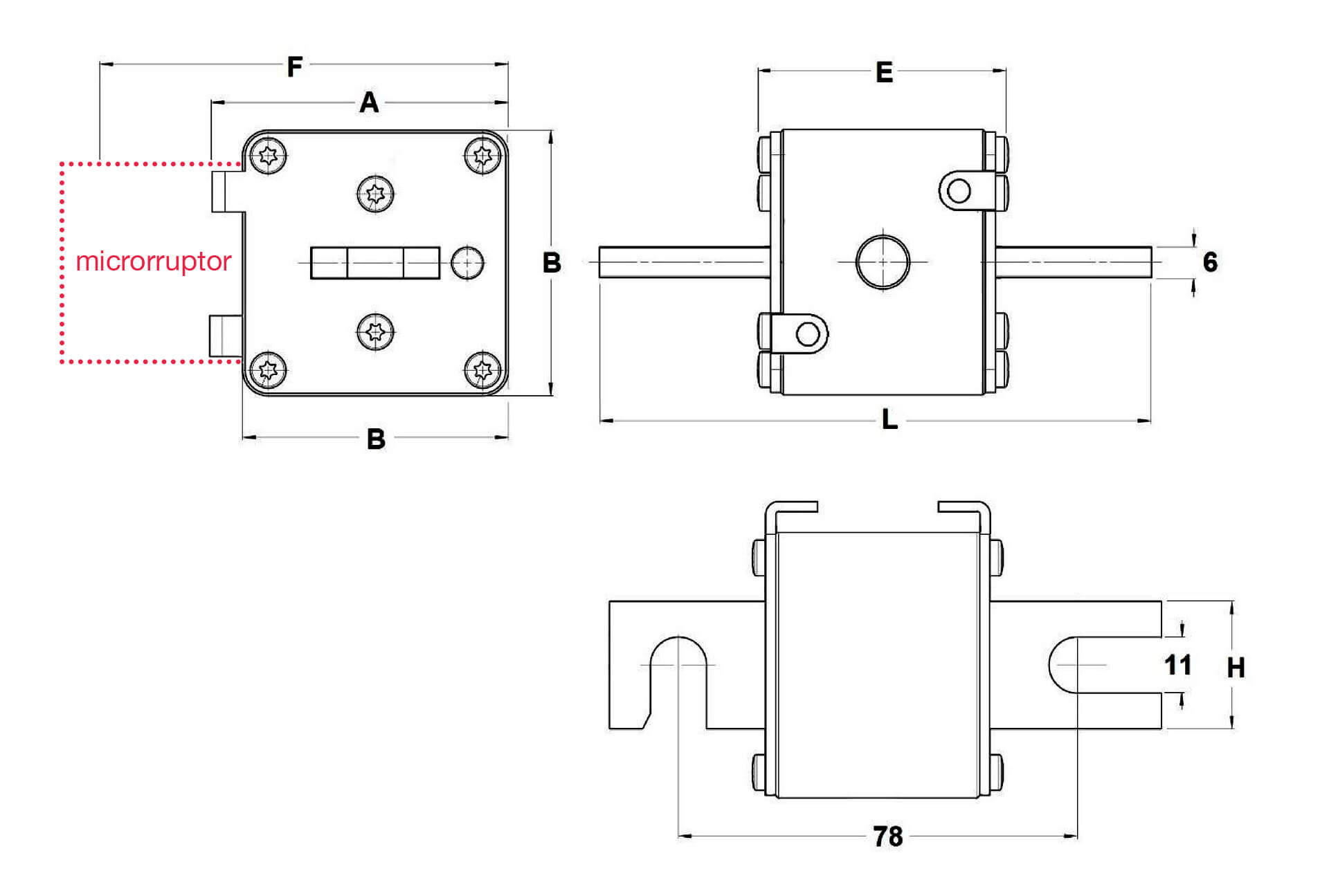 | sistema microrruptor para fusibles SQB CUERPO CUADRADO aR |