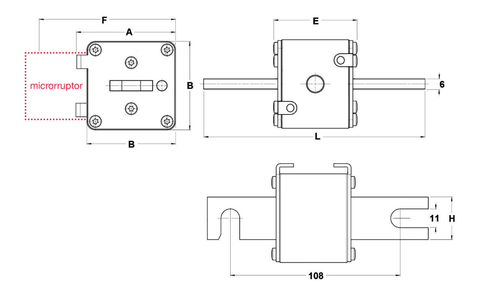 | sistema microrruptor para fusibles SQB CUERPO CUADRADO aR |