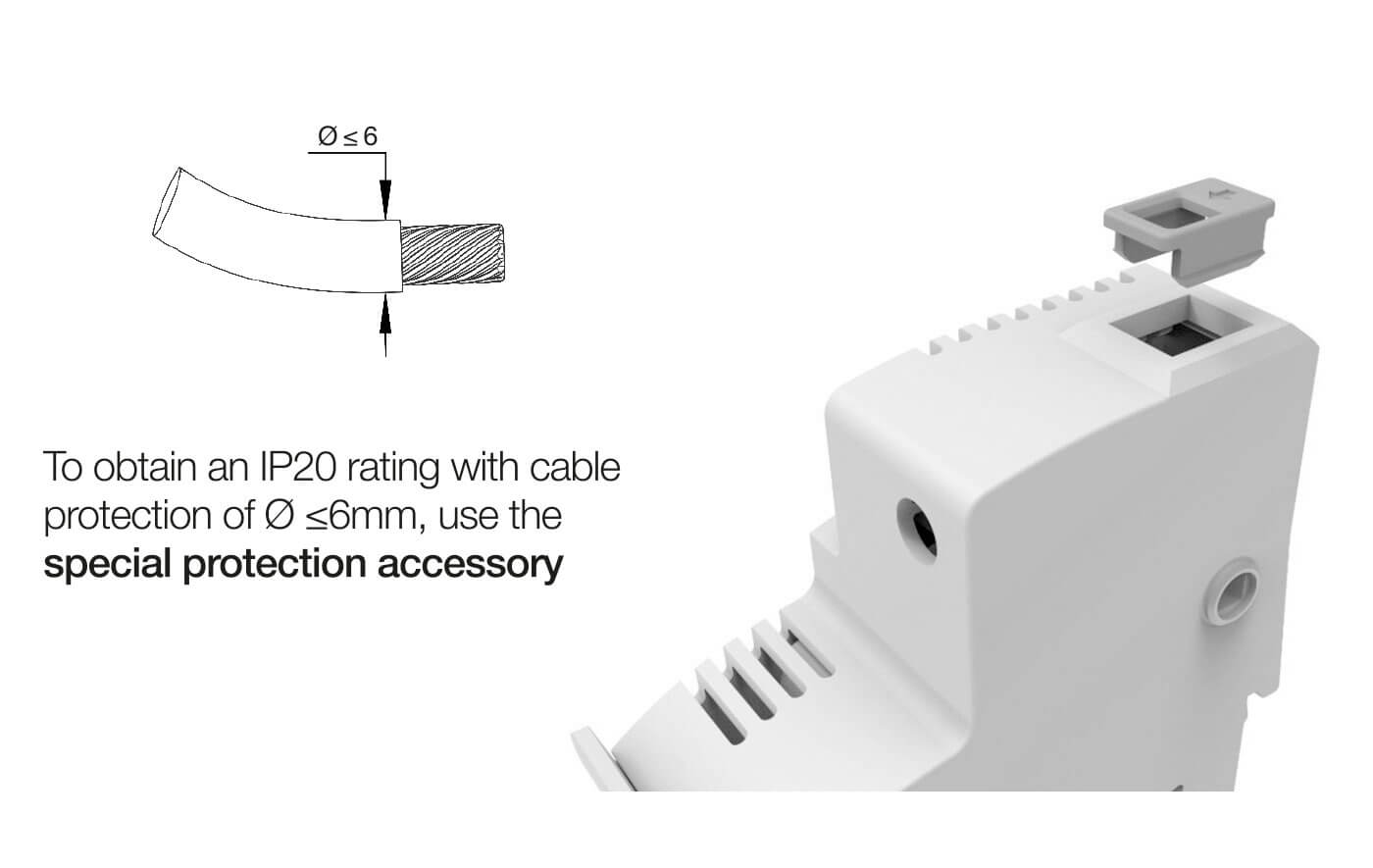 | * To obtain an IP20 rating with cable protection of Ø ≤6mm, use the special protection accessory. | |